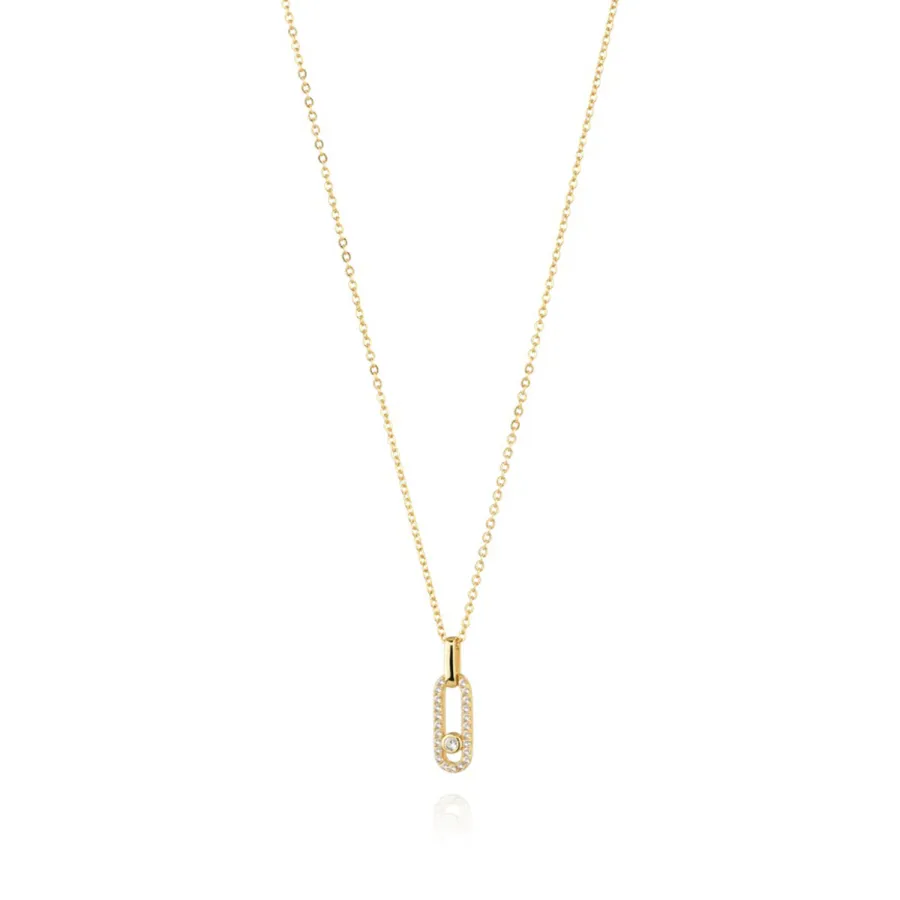 Colar Link em Prata Dourada e Zircónias