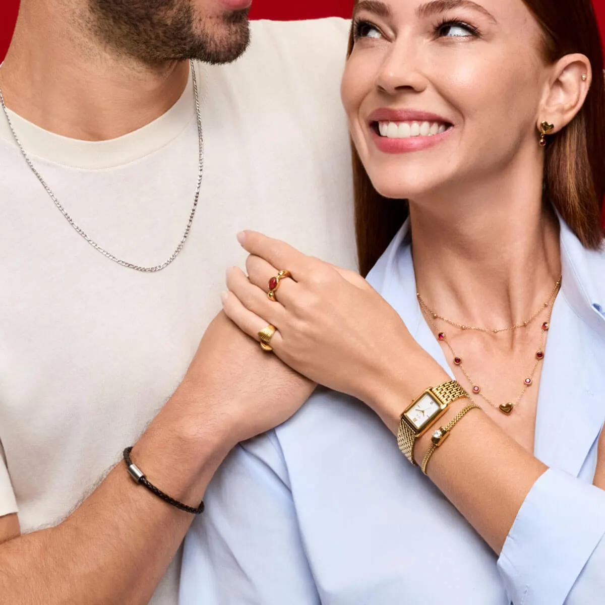 | Material | Aço com banho de ouro |