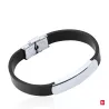 Pulseira em pele lisa preta com chapa em aço 316L. Personalizável.
