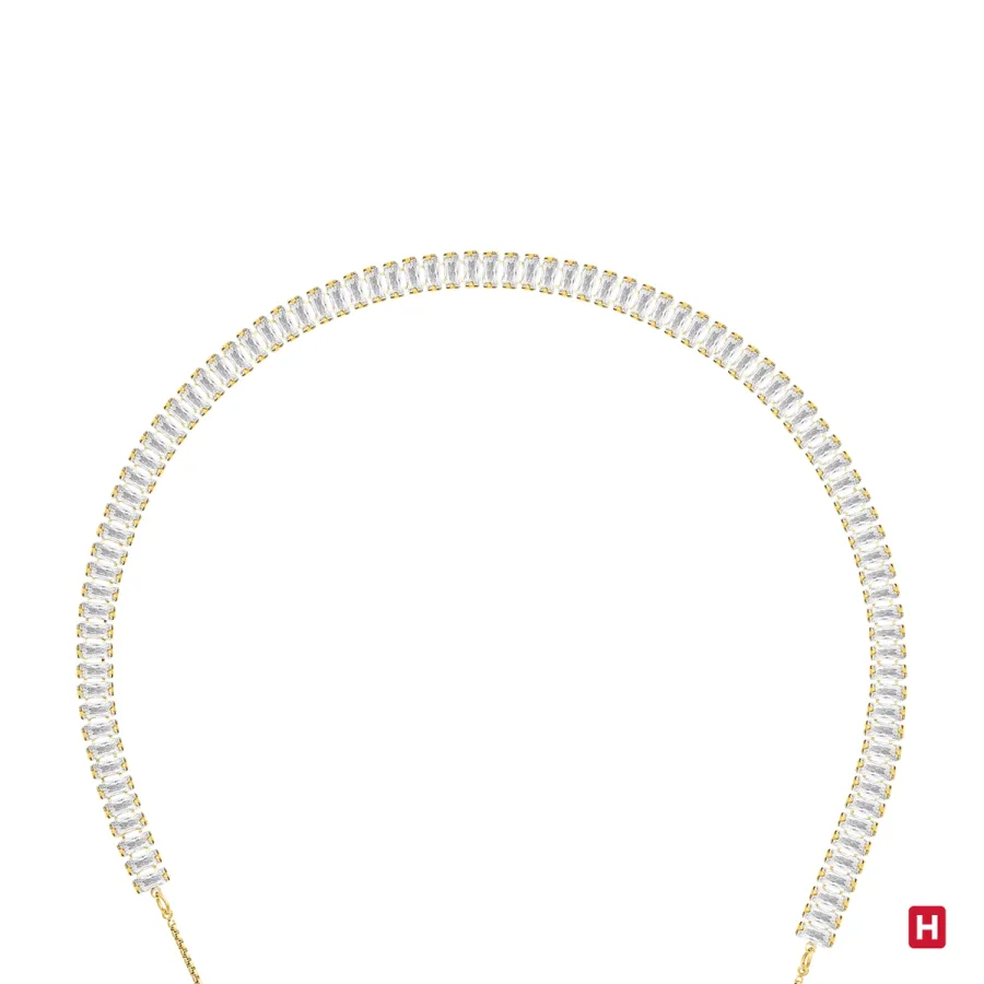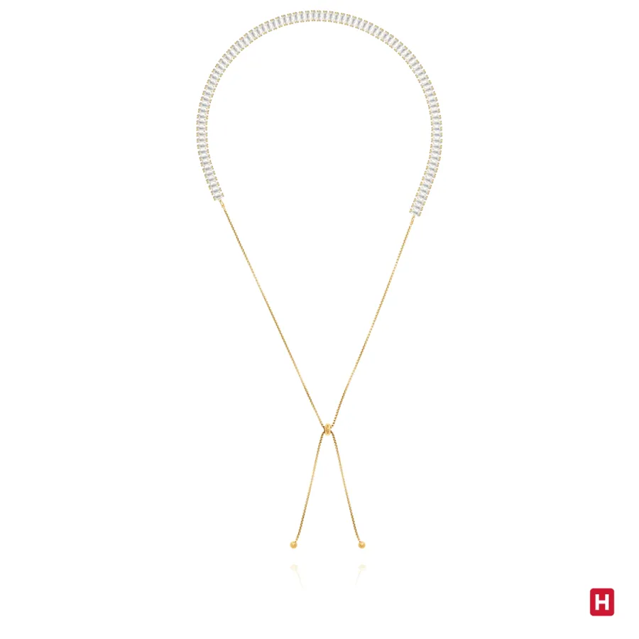 Colar em aço com banho de ouro e zircónias rectangulares, ajustável.
