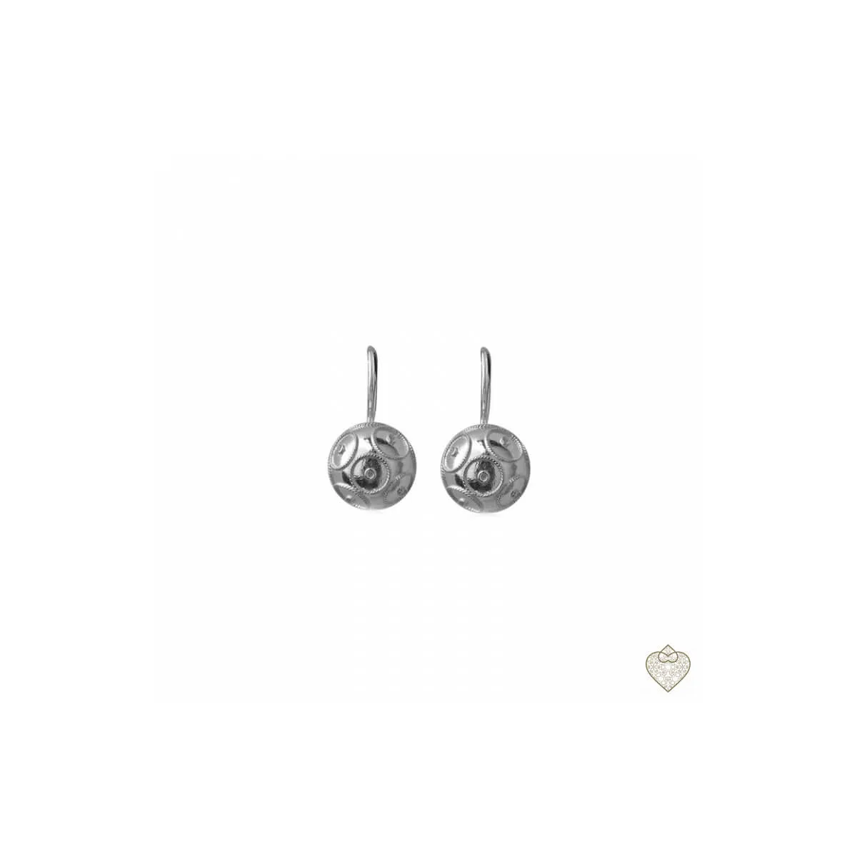 Brincos Bolas de Viana em filigrana, com gancho, em prata com banho de ródio, da marca Saudade.