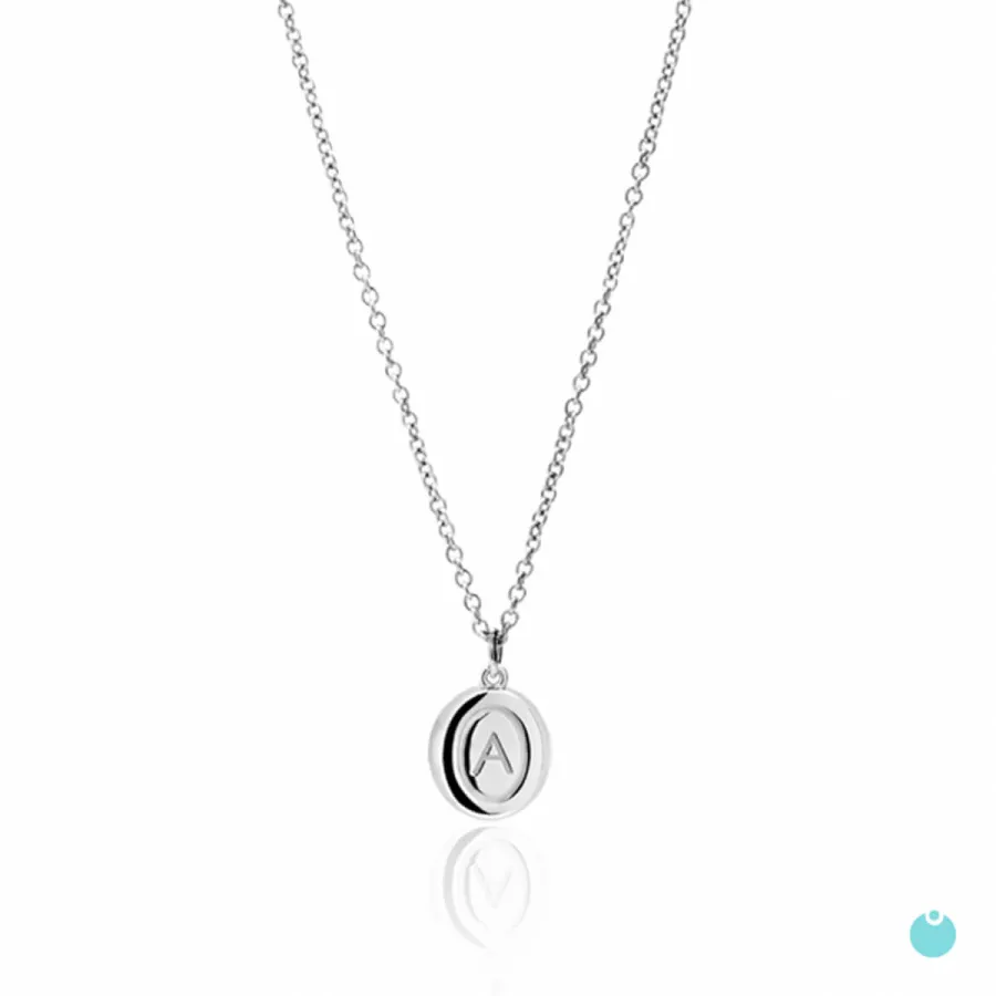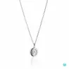Colar com medalha oval. Este colar é de prata com banho de ródio e a medalha é personalizável.