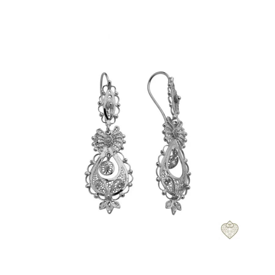 Brincos à Princesa, em filigrana, de prata com banho de ródio, da marca Saudade.