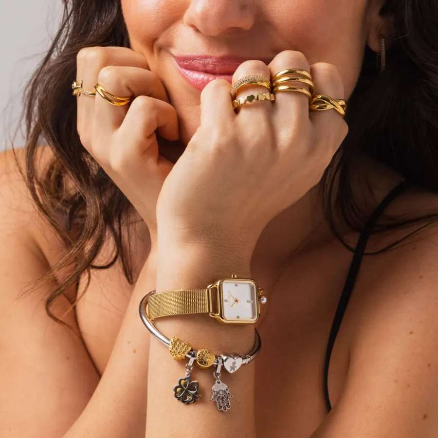 | Material | Aço com banho de ouro |