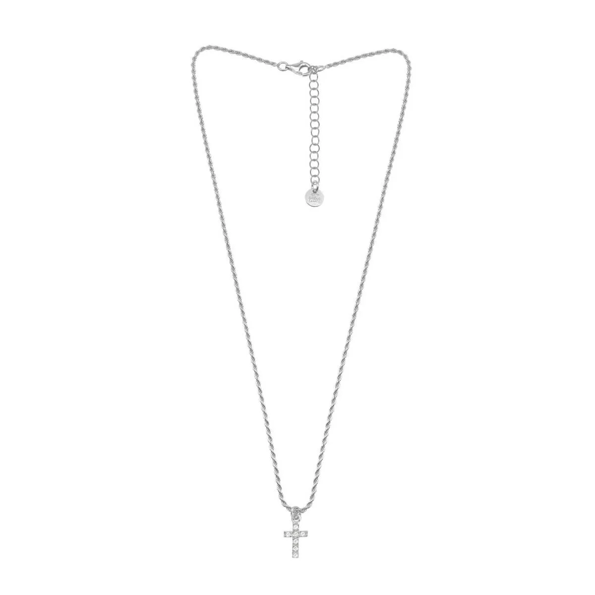 Colar Trust em prata de lei, banhado a ródio, com zircónia. Joia com pendente de cruz que representa a proteção, a fé e o pensamento positivo. Simples e elegante, ideal para a acompanhar todos os dias.
