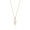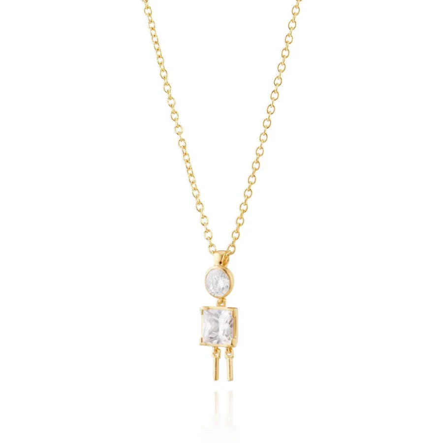 Colar com medalha em forma de menino em prata com banho de ouro e zircónias brancas.