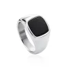 Anel de homem em aço, quadrado com pedra preta.