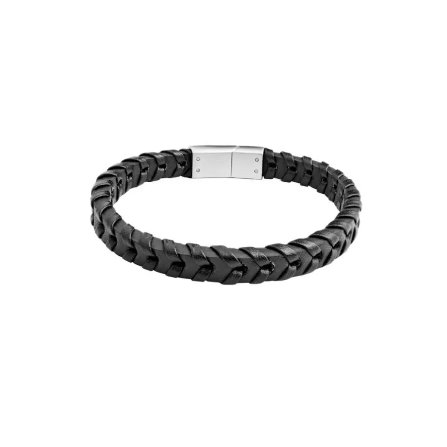 Pulseira em couro preto com fecho em aço. Personalizável.
