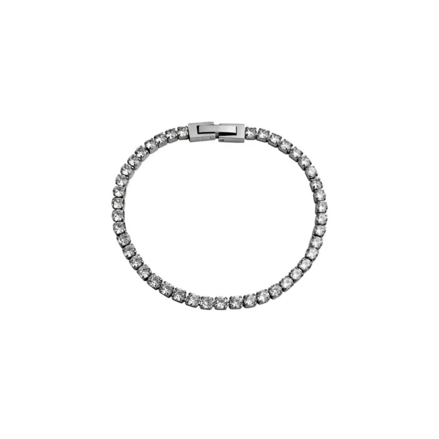 Pulseira em aço, modelo riviera, com zircónias.