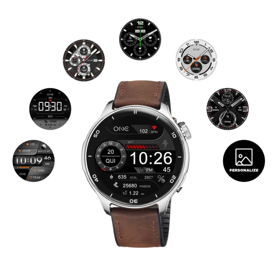 O smartwatch One Men Explorer GPS, da geração 4, eleva a tua experiência ao próximo nível com a mais recente funcionalidade: GPS integrado, agora disponível em 5 modos de treino em tempo real: corrida, caminhada, ciclismo, trail running e trail walking. Esta inovação permite um acompanhamento mais preciso e autónomo das tuas rotas, mesmo sem o telemóvel por perto. Com um design robusto e masculino, o modelo apresenta uma bracelete em pele castanha e um ecrã AMOLED, que garante uma visualização nítida e vibrante. A função de comando por voz com tecnologia AI permite interagir com o telemóvel de forma prática e rápida diretamente a partir do smartwatch, todas as respostas e informações processadas são apresentadas no telefone. A ligação com a app ONE Smart completa a experiência, oferecendo monitorização de saúde, acompanhamento detalhado da atividade física e, agora, treinos com GPS em tempo real para quem vive com espírito de aventura. Combinando tecnologia de ponta e versatilidade, este smartwatch é a escolha ideal para quem quer estar sempre ligado e sempre no rumo certo.
