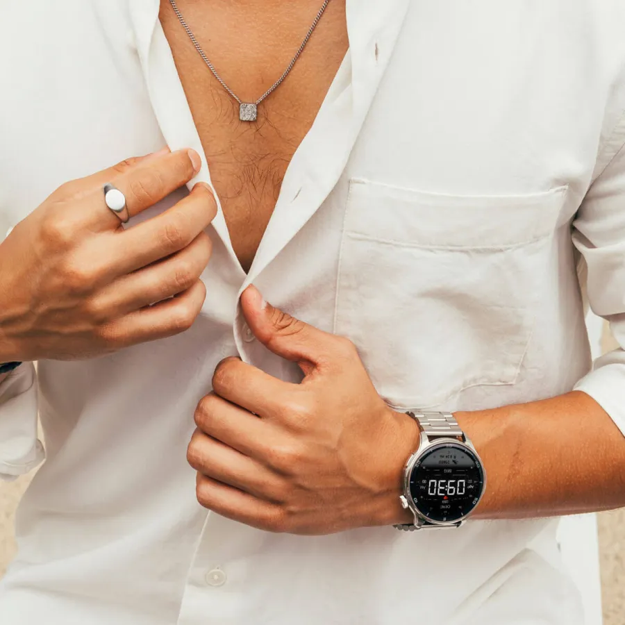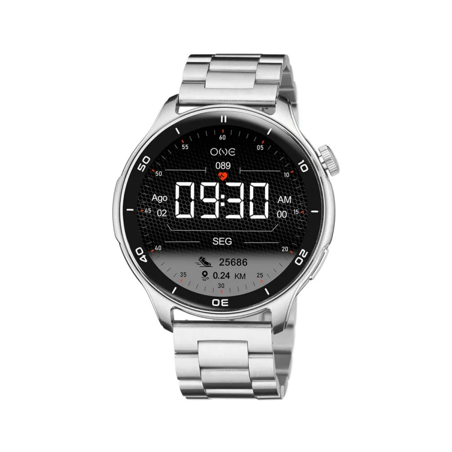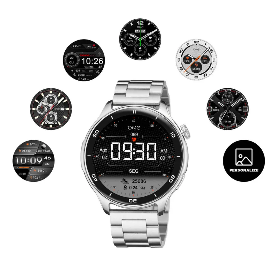 O smartwatch One Men Explorer GPS, da geração 4, eleva a tua experiência ao próximo nível com a mais recente funcionalidade: GPS integrado, agora disponível em 5 modos de treino em tempo real: corrida, caminhada, ciclismo, trail running e trail walking. Esta inovação permite um acompanhamento mais preciso e autónomo das tuas rotas, mesmo sem o telemóvel por perto. Com um design robusto e masculino, o modelo apresenta uma bracelete em aço inoxidável prateada e um ecrã AMOLED, que garante uma visualização nítida e vibrante. A função de comando por voz com tecnologia AI permite interagir com o telemóvel de forma prática e rápida diretamente a partir do smartwatch, todas as respostas e informações processadas são apresentadas no telefone. A ligação com a app One Smart completa a experiência, oferecendo monitorização de saúde, acompanhamento detalhado da atividade física e, agora, treinos com GPS em tempo real para quem vive com espírito de aventura. Combinando tecnologia de ponta e versatilidade, este smartwatch é a escolha ideal para quem quer estar sempre ligado e sempre no rumo certo.