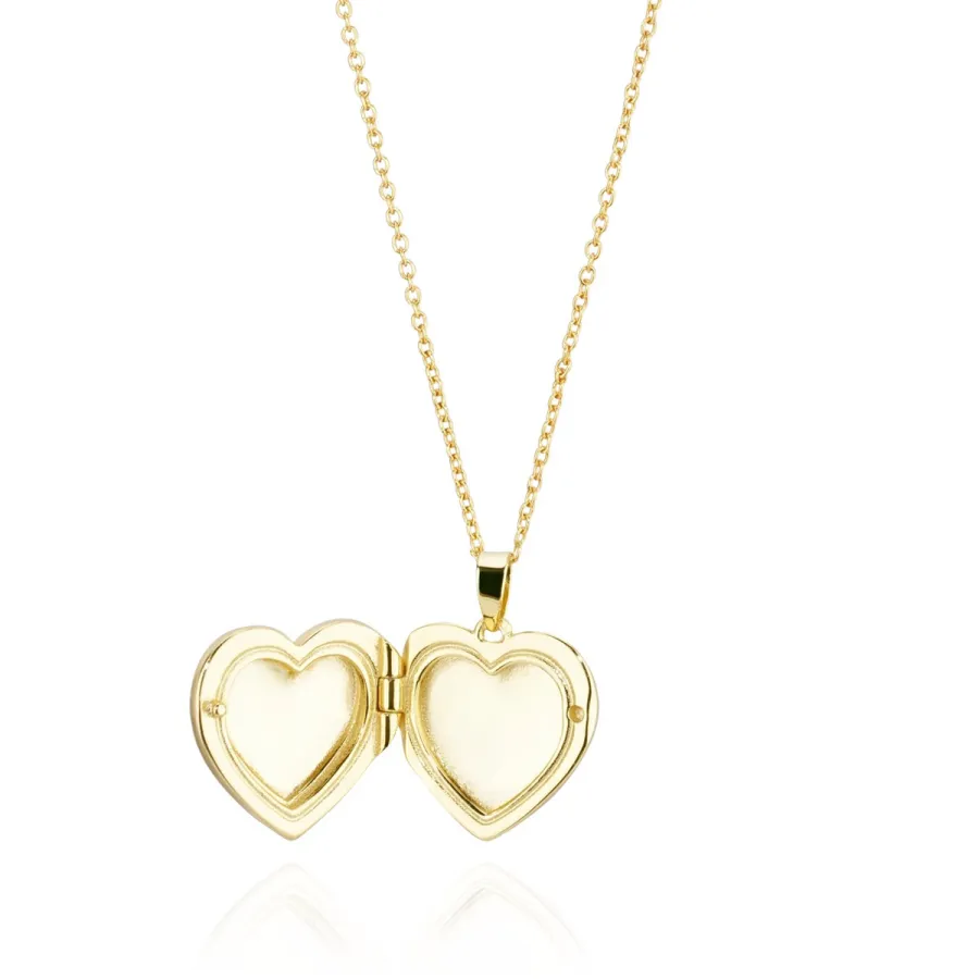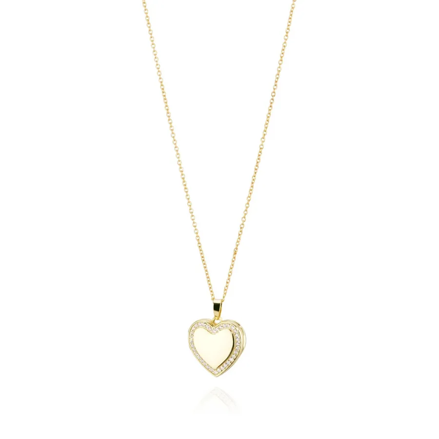 Colar Link com locket em prata com banho de ouro e zircónias.