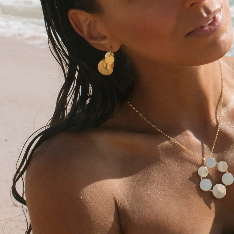 Brincos Sunset em prata de lei, banho de ouro. O pôr do sol é como uma coleção exclusiva de joias: muda todos os dias, mas encanta sempre. Transformamos joias em memórias, crie momentos inesquecíveis.