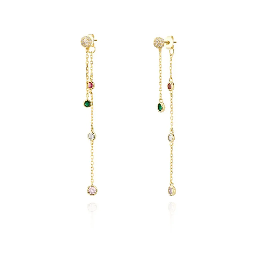 Brincos Link em prata com banho de ouro com zircónias coloridas.