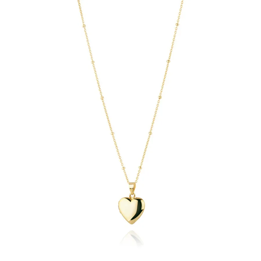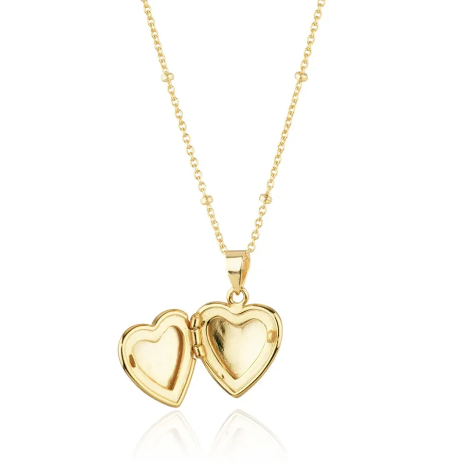 Colar Link em prata com banho de ouro e locket em formato de coração. Personalizável.