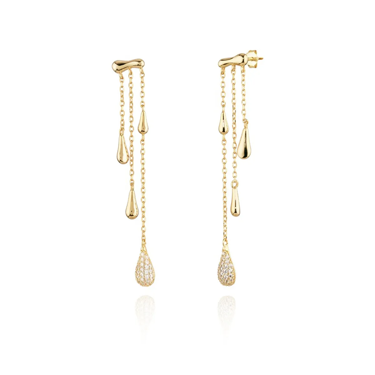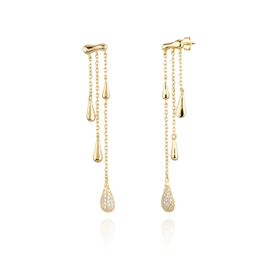 Brincos Link em prata com banho de ouro e zircónias.
