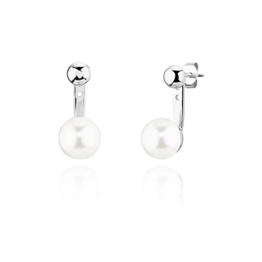 Brincos Link em prata com banho de ródio e pérolas.