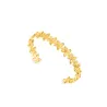A escrava Fleur celebra a feminilidade através de um design delicado e harmonioso. Com uma estrutura aberta e acabamento totalmente dourado, distingue-se pela sequência de pequenas flores em relevo que percorrem toda a pulseira, criando um efeito tridimensional suave e luminoso. Cada pétala foi desenhada para refletir a luz de forma subtil, evocando a leveza, a graciosidade e a beleza da natureza. Romântica e elegante, a Fleur é perfeita para usar sozinha, como ponto de destaque, ou combinada com outras pulseiras, seguindo a tendência de "stacking". Uma peça que equilibra suavidade e sofisticação, pensada para quem aprecia acessórios com um toque poético e intemporal.